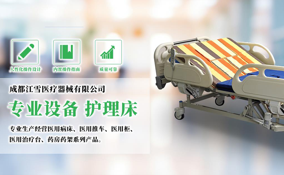 成都江雪医疗器械有限公司是一个集一类、二类医疗器械专业生产经营企业、专业生产经营医用病床、医用推车、医用柜、医用治疗台、药房药架系列产品。公司占地2万平米,建筑面积1.3万平米,拥有强大的研发及制造能力,生产员工百余人,专业技术人员十余人,标准生产车间3座,拥有数控机床、液压机、喷涂流水线。